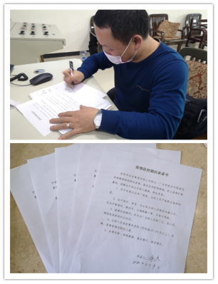 (签递抗疫责任承诺书,坚守岗位履行职责)