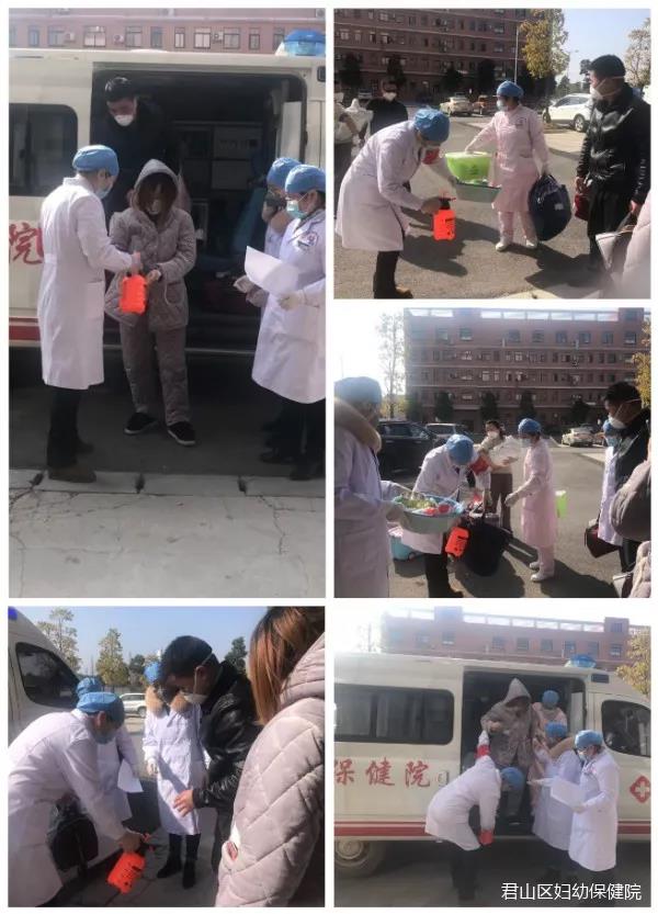 根据上级要求,区人民医院改造为隔离医院,一名在院产妇需转院至我院继续治疗,我院分管保健副院长任英、妇产科主任王文、护士长李柯亲自去接产妇及新生儿来院。在进院时,院感科主任彭芳对产妇、家属及用物进行防护性消毒后再安送至病房。