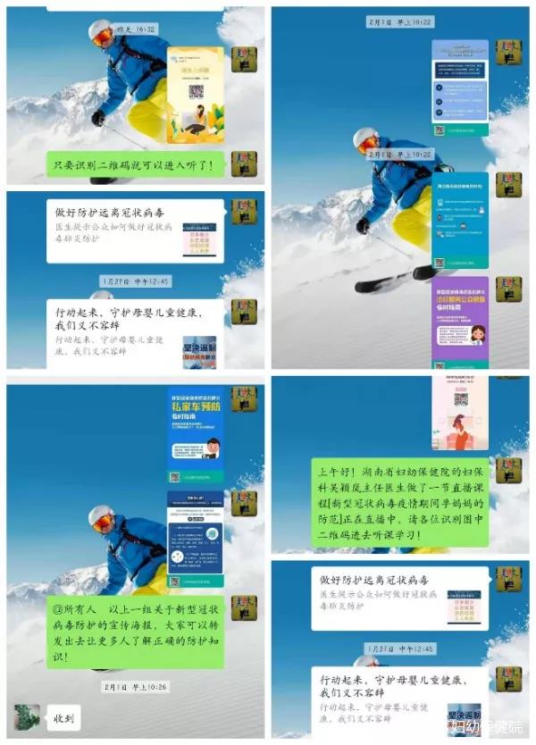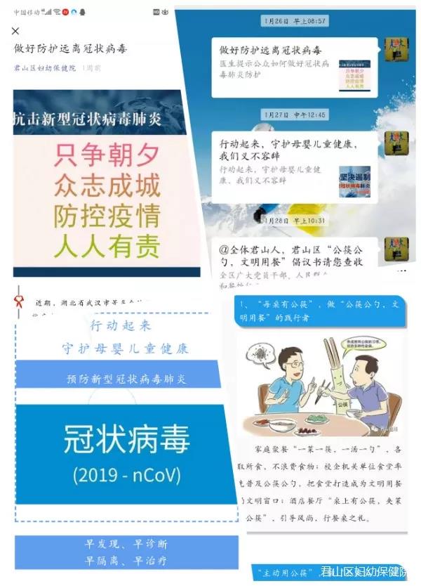 及时将各类疫情防控宣传资料发送给各医疗机构的妇幼健康教育专干,再转发给所有孕产妇及儿童家长,让全区妇女儿童认识防控要点,保障他们的健康。