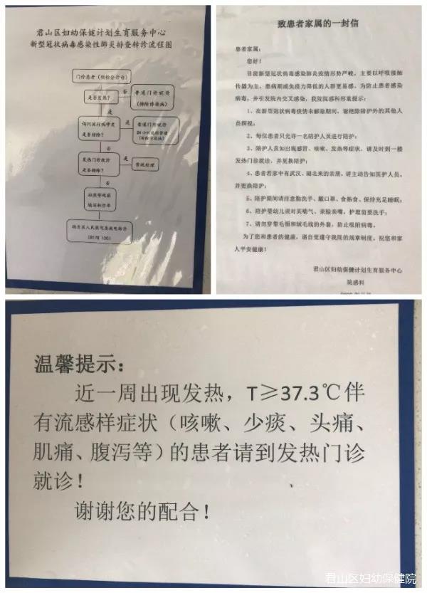 在导诊台、各科醒目位置张贴了就诊流程、温馨提示及致患者(儿童)家属的一封信,提示疫情期间就医指南。