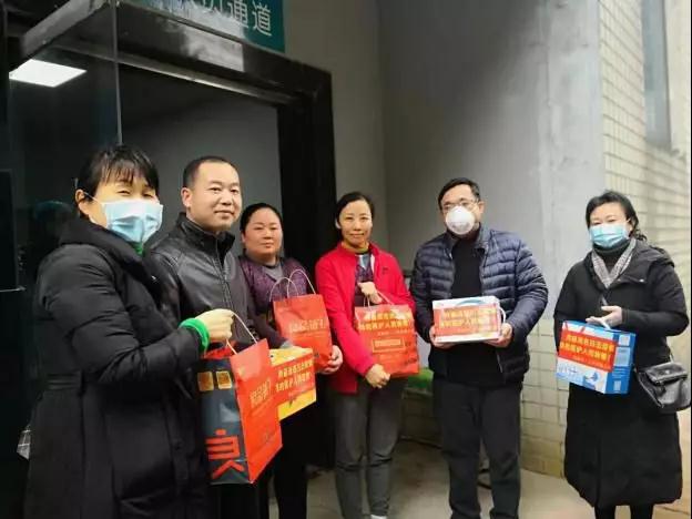 1月27日大年初三,院工会疫情慰问保障工作采购组、联络组、宣传组分头行动。上午十一点,满载一车的生活用品、营养品等到达南院感染科工作人员区,工会一行亲手将慰问物品交予感染科主任李四海、副主任杨景,护士长赵梅梅等一线人员,细心叮嘱他们做好自我防护,保持充沛精力,有什么困难及时向院工会反映,不要有后顾之忧,要全心全意打赢这场疫情阻击战。