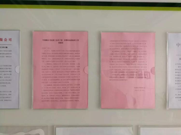 疫情发生以来,公司工会组织快速反应,深入职工,发动职工,奏响了抗击疫情的集结号。迅速向职工转发了《中储棉公司直属工会关于进一步做好疫情防控工作的倡议》《关于加强新型冠状病毒感染肺炎防控工作专项资金使用管理的通知》《新型冠状病毒职工防护知识50问》,迅速将疫情防控知识普及到职工当中,确保人人了解防护知识、人人明晰防护要求,引导职工切实做好自我防护。