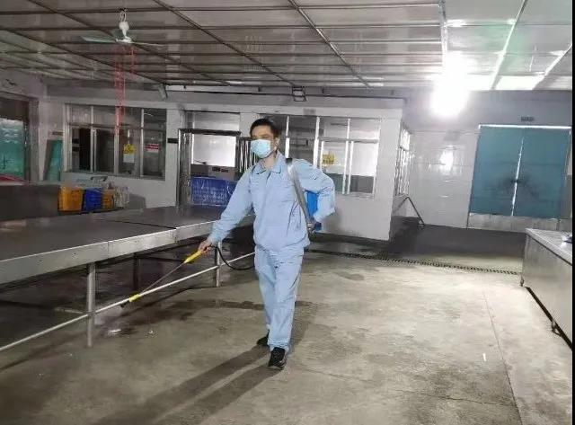 在就餐方面,取消集中就餐,实行领餐制;加强与供货商的沟通对接,严格把控各道工序,确保食材原料供应;厨师和工作人员每天“岗前—岗中—岗后”测体温三次并做好记录,餐车、餐具及操作区域每天都要消毒3次,确保职工就餐安全。