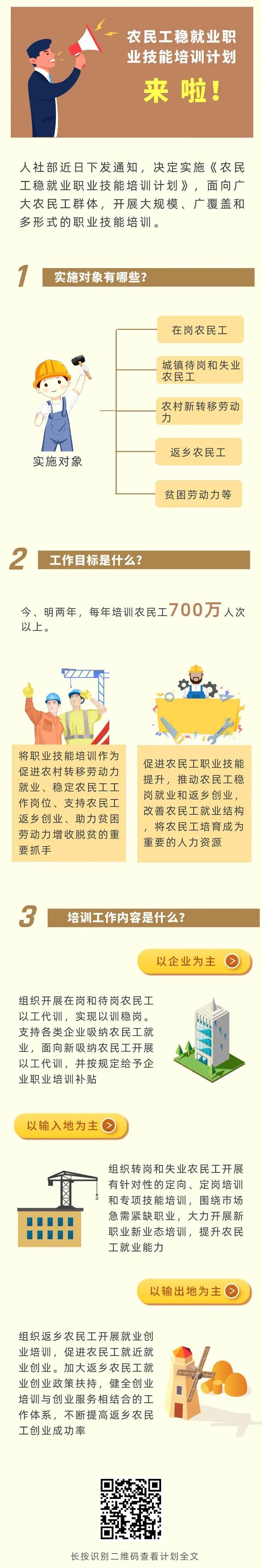 一图看懂!每年培训700万人次以上,这个计划关乎广大农民工的就业!