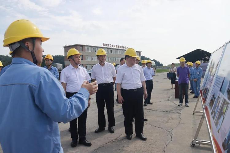 ▲考察巴陵石化己内酰胺项目建设和劳动竞赛情况