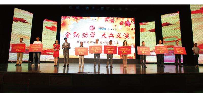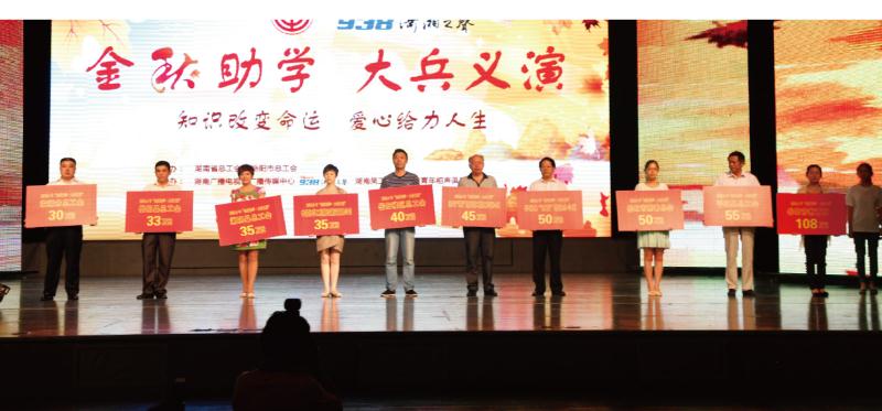 为进一步拓宽筹资渠道,搭建社会化助学平台,省总工会、市总工会联合向我省著名笑星大兵及其团队发出爱心邀约,重点推出“金秋助学·大兵义演”公益行动,打造工会助学公益品牌。8月19日下午,爱心义演在市会展中心大剧场精彩上演,整场活动共募集爱心善款897万多元,22名品学兼优的困难学子现场获得了19家爱心企业和爱心人士连续4年的资助。