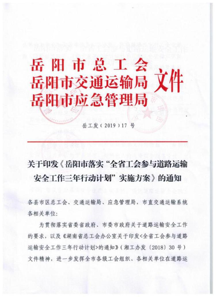 《关于印发<全市工会参与道路运输安全工作三年行动计划的实施方案>的通知》