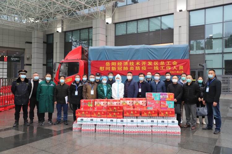 2月4日,岳阳经济开发区总工会党组书记、常务副主席易金华一行到岳阳市高铁站等5个防控点慰问坚守在防疫一线的工作人员,为坚守在防疫一线的干部送去工会组织的温暖与关怀。