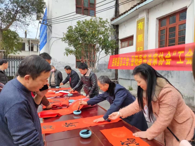 2月3日,岳阳县总工会联合岳阳县书法家协会在县新时代文明实践中心和毛田镇开展“送春联 进万家 ”志愿服务活动,送出春联1000幅,为广大职工群众送上牛年美好祝福。