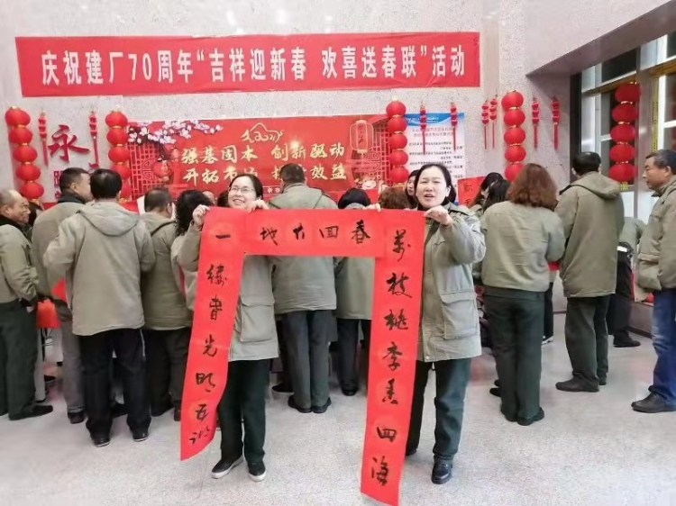 无联不成春,有联春更浓。为迎接农历新年的到来,传承中国优秀传统文化,庆祝建厂70周年,2月8日,公司工会开展送春联活动,邀请爱好书法的职工现场书写春联,为职工送上新年美好祝福。