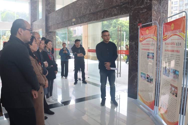 会议开始前,参会人员在一楼大厅参观了2020年全市工会权益保障工作成果展,由各县市区工会相关负责人介绍本单位权益保障的亮点工作、特色工作。