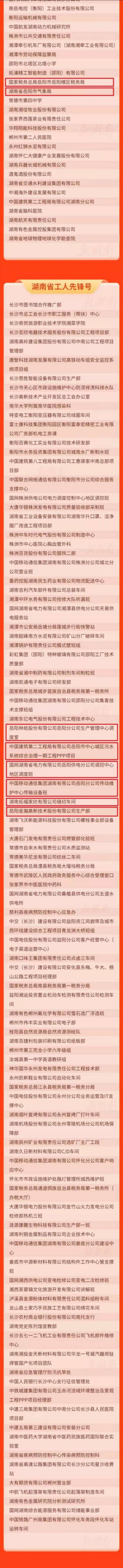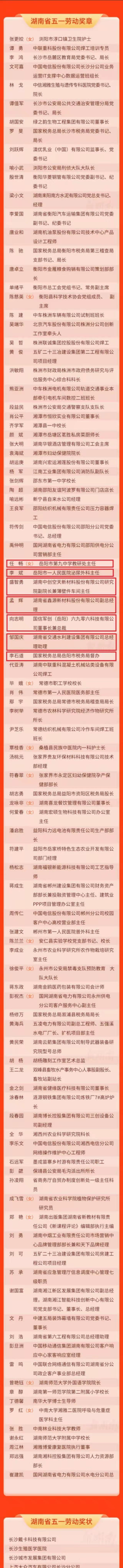 湖南省庆祝“五一”国际劳动节暨先进集体先进个人表彰大会光荣榜: