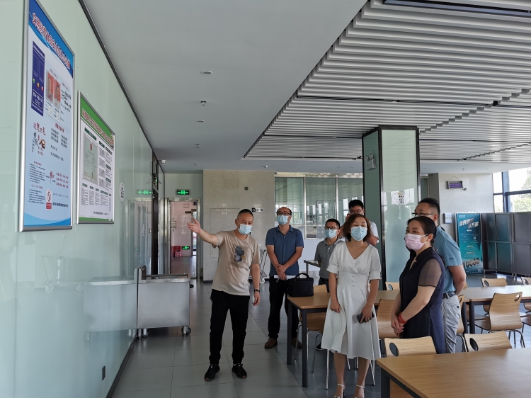 朱飞鹰一行先后参观了公司的厨房、餐厅、配菜间、主食存储间、辅食存贮间、活动区、健身房等,详细了解复星合力公司食堂食材来源、环境卫生、餐具消毒设施、食品加工流程、食品存储管理、员工生活情况等相关情况。