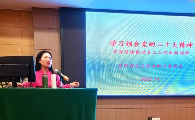 市总工会副主席、女工委主任朱飞鹰为学员们做了“贯彻落实党的二十大精神——学深悟透推动工作落实创新”专题辅导讲座。