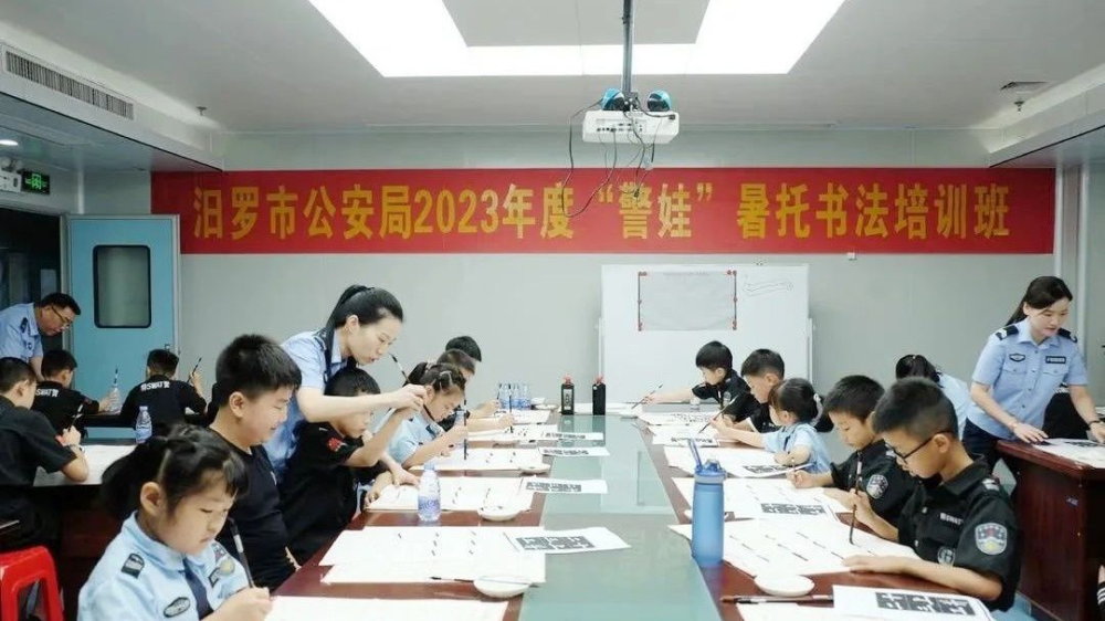 暑期如何防溺水?软笔、硬笔有哪些讲究?怎样做出小手工……7月6日上午,汨罗市公安局第三期警娃暑托班、特色书法班正式开班,206名“警娃”在老师们的带领下,学得专心、玩得开心,也让警爸警妈们放心,处处洋溢着轻松快乐。