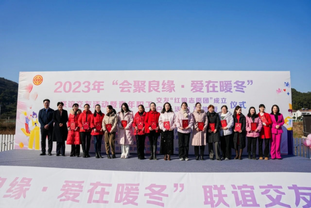 12月22日恰逢冬至节气,在这个美好的日子里,“会聚良缘·爱在暖冬”联谊交友活动暨青年职工联谊交友“红娘志愿团”成立及户外活动基地授牌仪式,在美丽的麻布山珍果园举行,200名来自党政机关、企事业单位的单身青年职工开启了一段邂逅浪漫的缘分之旅。