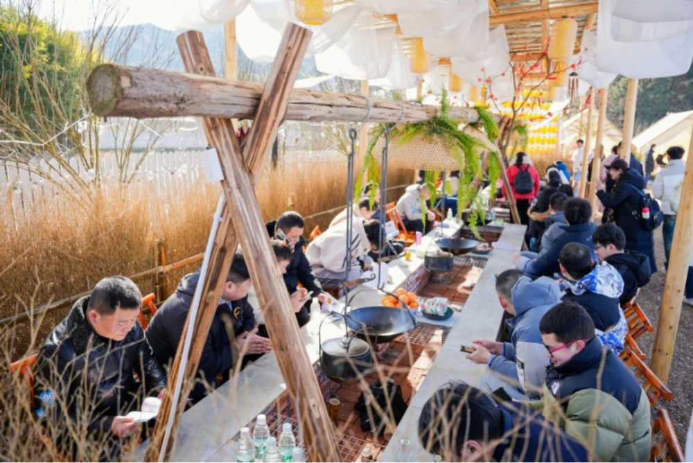 活动现场,一炉炭火、一张烤架、一壶热茶,壶边摆上花生、柑橘、红薯等吃食,三五相亲嘉宾围坐,围炉煮茶,处处洋溢着甜蜜浪漫的气息。为迅速拉近单身青年之间的距离,在主持人的引导下,男女嘉宾通过登山互动游戏,在轻松有爱的氛围中寻找属于自己的缘分。