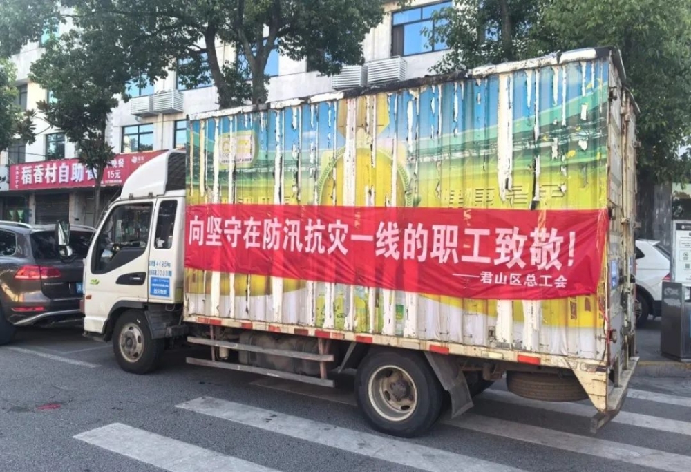 7月6日,君山区总工会开启“防汛送清凉”活动,协同湖南省温暖工程基金会,先后来到柳林洲街道、钱粮湖镇、良心堡镇、芦苇场防汛指挥所等37个防汛点位,慰问奋战在防汛抗灾一线的干部群众,为一线防汛抗洪值守人员送去了矿泉水、王老吉、西瓜、方便面等10余万元的急需物资。