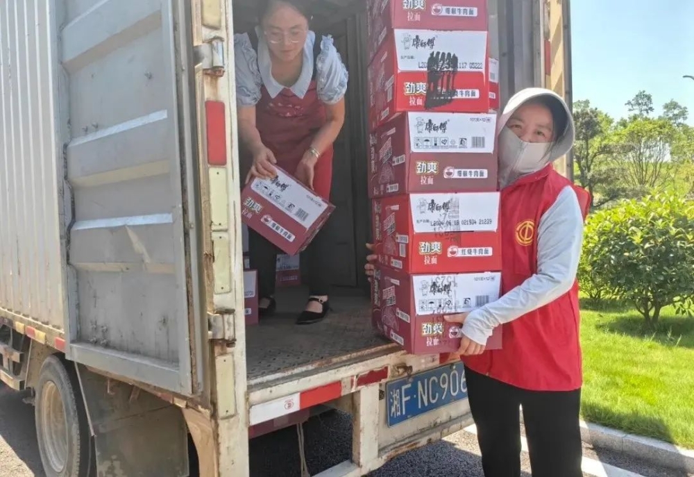 洪水无情,人间有爱。7月7日下午,满载着方便面、牛奶、大米、食用油、被子、衣物等灾区人民急需物资的大货车从岳阳电厂驶出,奔赴华容县团洲乡抗洪救灾前线,为灾区人民送去温暖和希望。