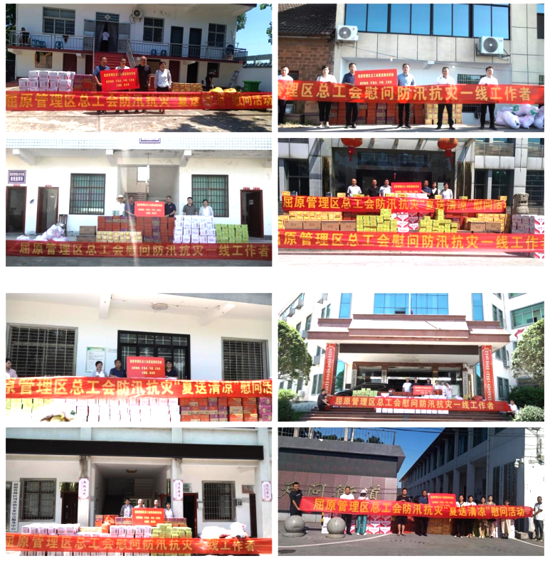 屈原管理区总工会开展了防汛抗灾“夏送清凉”慰问活动。慰问组深入防汛一线,看望广大奋战在一线的防汛抗灾工作人员,为他们送去凉茶、矿泉水、牛奶、方便面等慰问物资,并对他们冲锋在前、连续作战的精神表示敬意和感谢。