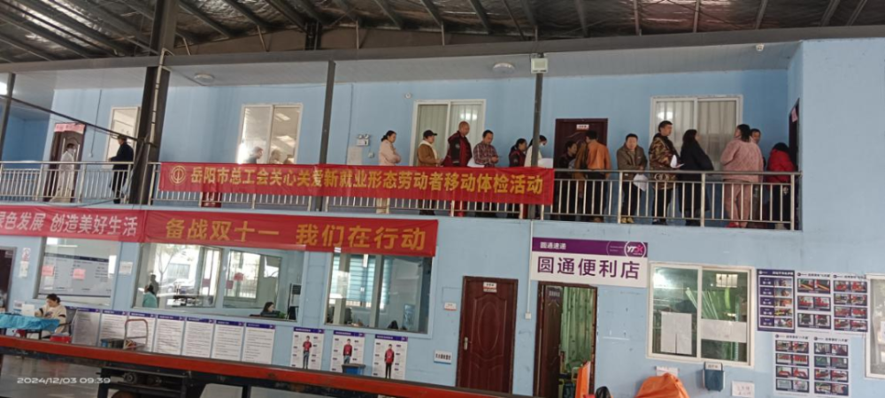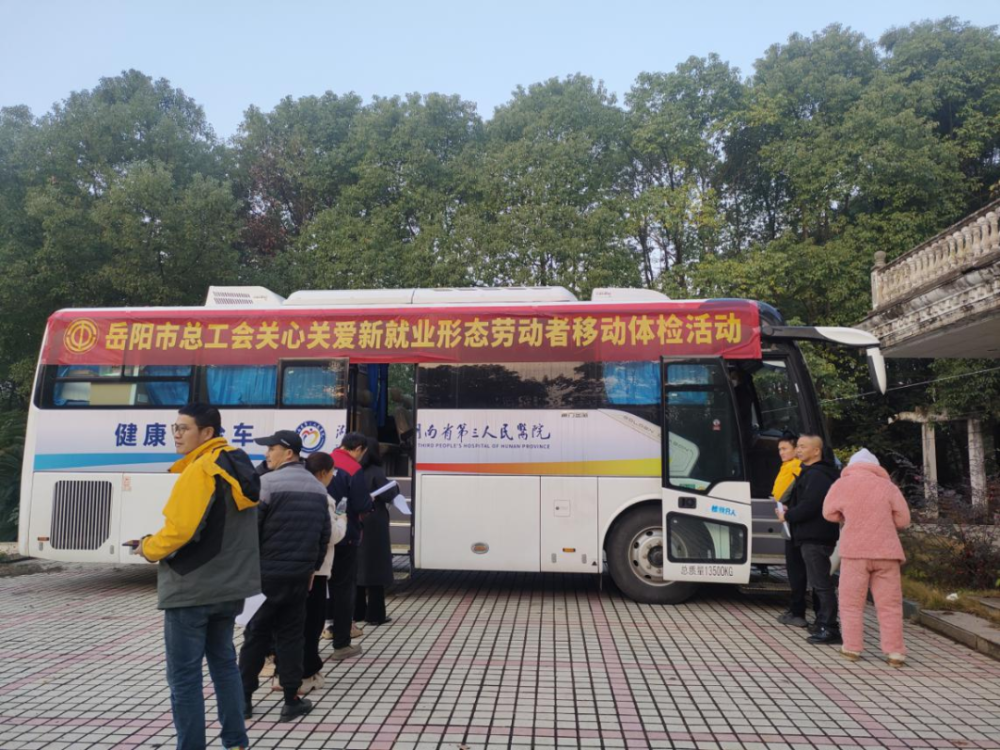 近日,岳阳市总工会开展新就业形态劳动者移动体检活动。市总工会委托湖南省第三人民医院组织专业医务人员和移动体检车先后到湘阴县、汨罗市、华容县和市中心城区等地为货车司机、网约车司机、快递员、网络配送员等新就业形态劳动者开展免费健康体检和健康咨询服务。