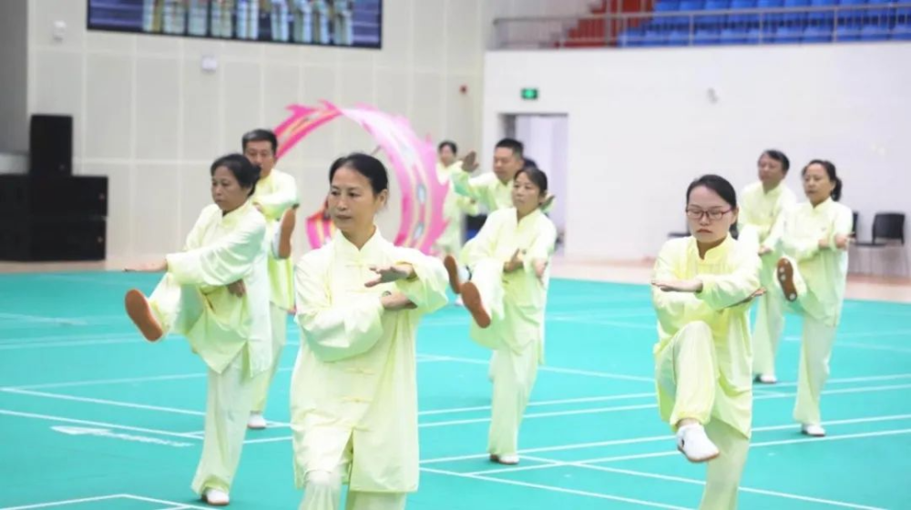 大赛现场,伴随着悠扬的乐曲声,来自全县各乡镇、社区的16支参赛代表队轮番上场,身着整齐雅致的太极服装,以灵动优美的身姿、刚柔相济的招式、新颖有趣的编舞,博得现场观众声声喝彩。