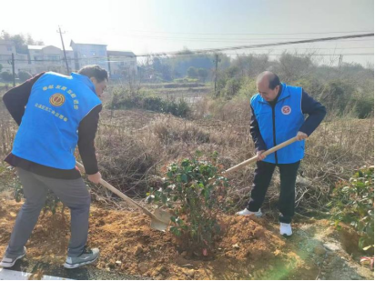 在植树现场,志愿者们配合默契,有的挥锹铲土,有的帮忙扶苗,有的提桶浇水,合力栽下了一棵棵树苗,一派热火朝天的劳动景象成为一道美丽的风景线。在大家的齐心协力下,共栽植红叶石楠球、茶花树、油茶树300余棵,一棵棵新栽植的树苗错落有致、迎风挺立,为帮扶村的春天增添了生机和活力。