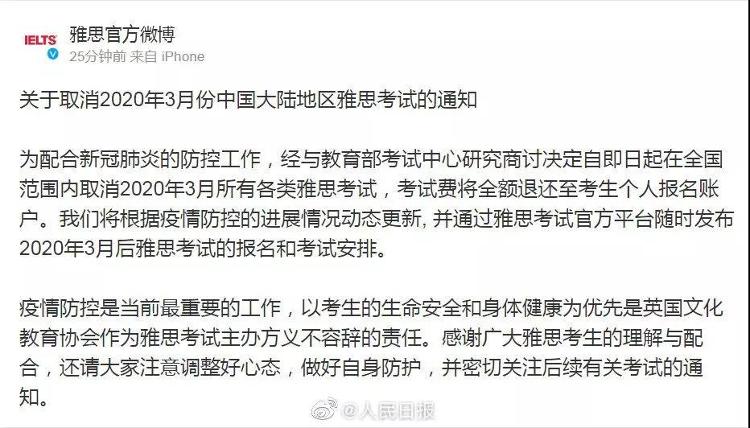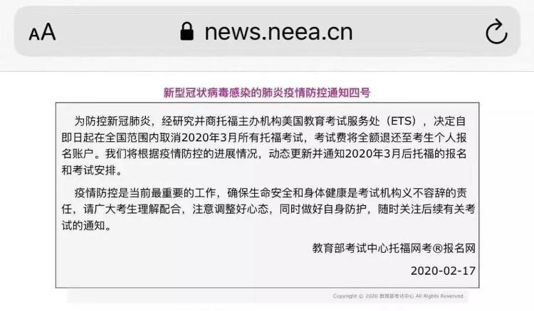 ▶托福取消3月考试安排教育部考试中心及托福官方纷纷发布通知,取消中国大陆三月份所有托福考试。