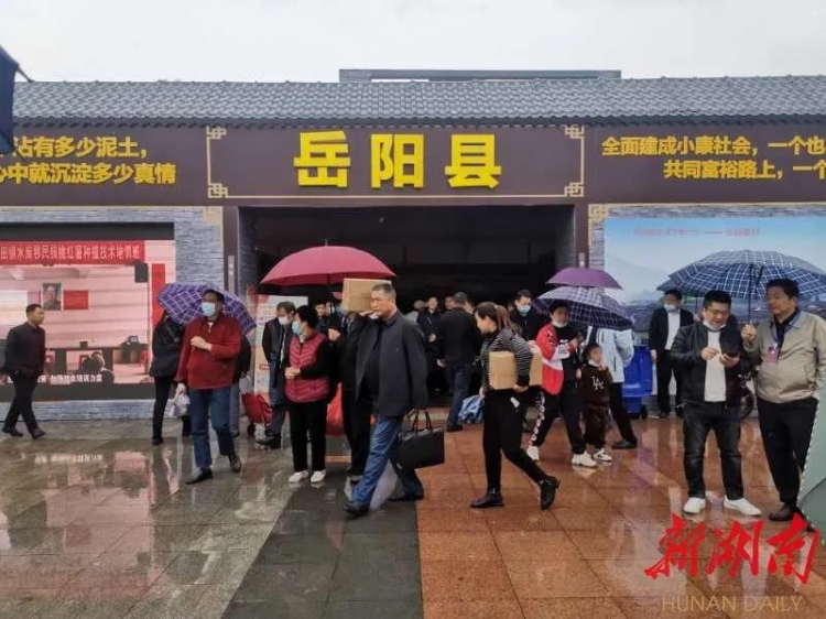 当日,活动现场共设置12个展区,岳阳市对口帮扶的湘西保靖县也应邀赴会,现场俨然一个大型集市。不少市民冒雨前来,满载而归。“线下活动将持续至10月19日。”活动相关负责人介绍,市民可通过关注“中福易达”微信公众号,进入扶贫商场下单;也可在展会期间参与直播、秒杀、抢购等活动。