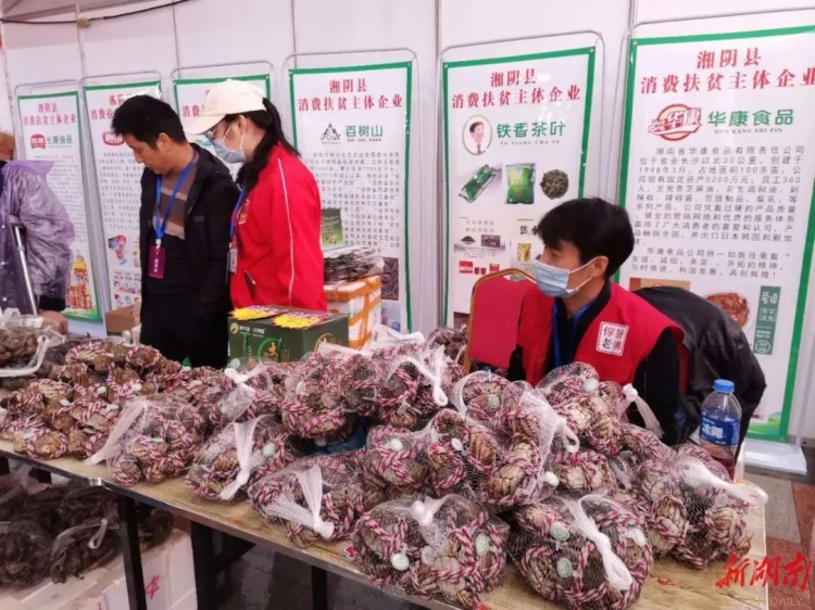 湘阴展区内,15家扶贫主体企业的摊位前人流络绎不绝。鹤龙湖螃蟹、南湖洲梅干菜、三塘藠头等10余种农特产品引得食客流连忘返。市民唐德在老家岳阳县展区买了一箱土鸡蛋后,又赶来湘阴展区买了一斤梅干菜。“趁着周末来逛逛,正好家里需要,也是一种扶贫。”唐德匆匆辞别记者,他还打算再去其他展区看看。
