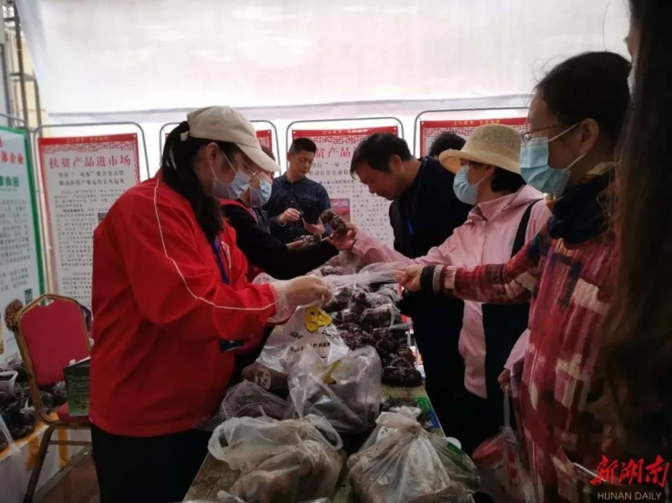 该县新墙镇优质葡萄合作社、岳阳兰花萝卜天裕福、田味农业科技、拥军面业等14家企业、合作社参加此次活动,驻村帮扶工作队也携贫困户的农副产品倾情而来。“从毛田镇英桥村带来了60斤干豆角,从麻塘镇东风村带来了30箱土鸡蛋……”帮扶干部如数家珍,推介贫困户的产品,帮助市民线上线下选购,热闹之余,令人倍感温馨。