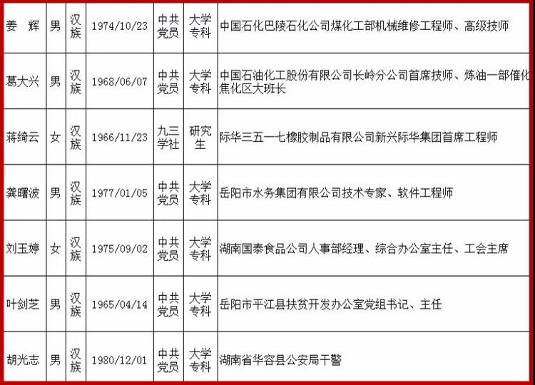 湖南省2020年全国劳动模范和先进工作者推荐人选基本情况表正式公示,岳阳市共有7位入选,快来看看他们都是谁呢?