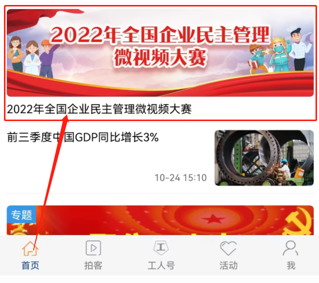 2.已下载工人日报APP的用户点开进入首页,即可进入活动页面观看作品并投票。