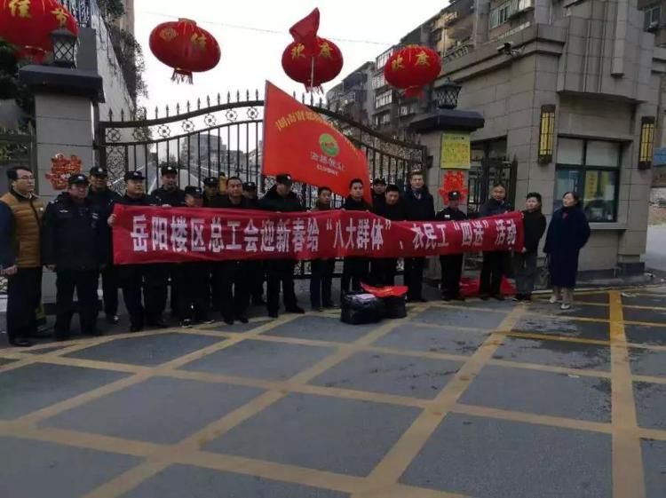 春节临近,岳阳楼区总工会总工会累计投入8万元,开展迎新春“四送”活动,暨给春节期间工作在一线岗位的八大群体及农民工送返乡车票、送年货(米、油、鱼、肉等)、送防寒物资(手套、围巾、袜子)、送春联等。