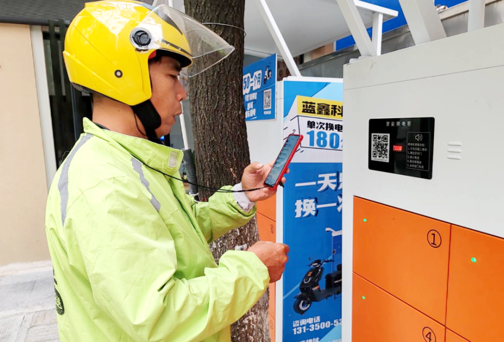 在暖心驿站外,来自快递企业“裹小递”的周师傅正在智能换电柜扫码换电。“在这里换电挺方便的,换一次电可以跑160公里,扫码换电就两三分钟,也不耽误我们送货。如果电动车损坏了,还可以在这里借用一辆。听说这里可以吃早餐了,我就第一时间告诉了群友这个好消息。”