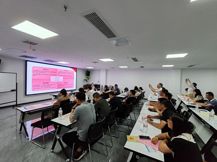 揭牌仪式后,全区各街道(乡)工会主席、东茅岭街道各社区调解专干及现代芸武购物中心、天虹百货、花嫁喜铺、岳阳礼一科技等东茅岭商圈重点企业工会负责人参加了“以法助企工会护航”工会法律服务培训。