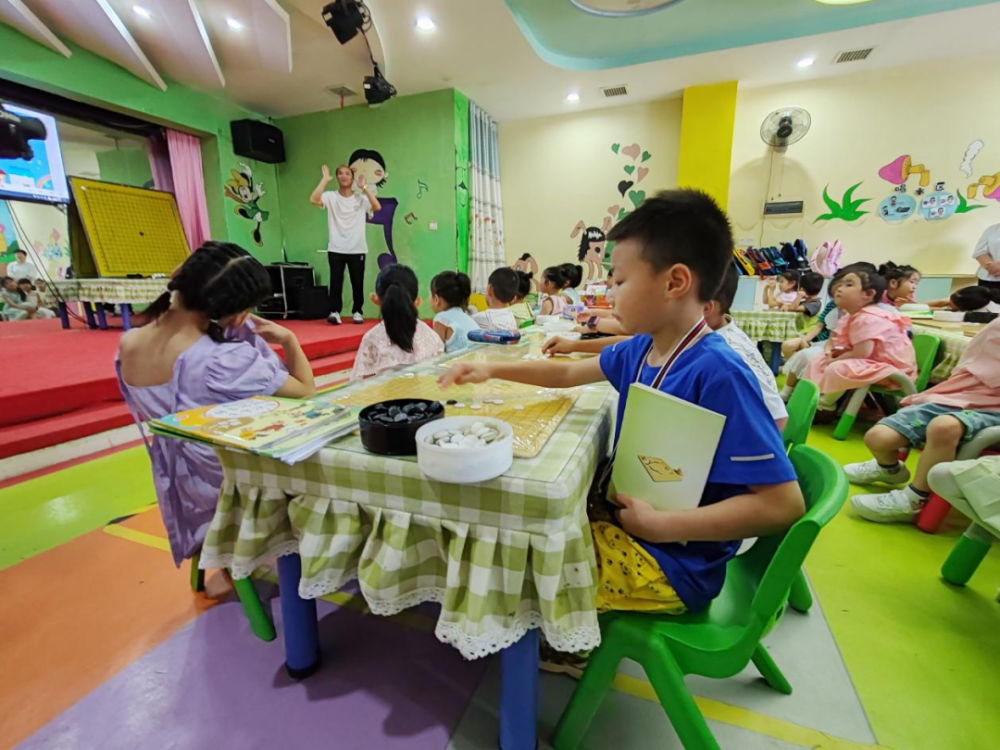 “身子正,手背起,文明下棋多神气。”一群适龄小朋友们在小小棋盘上落下一颗颗黑白子。在岳阳楼区青苹果幼儿园,30多名职工子女在专业围棋老师和保育员的带领下,小朋友们正在聚精会神下围棋。据该幼儿园负责人介绍,区总工会提供了一定的暑期托管补贴,减轻了职工们的负担,让职工“安安心心去上班”,让职工子女“开开心心玩中学”。