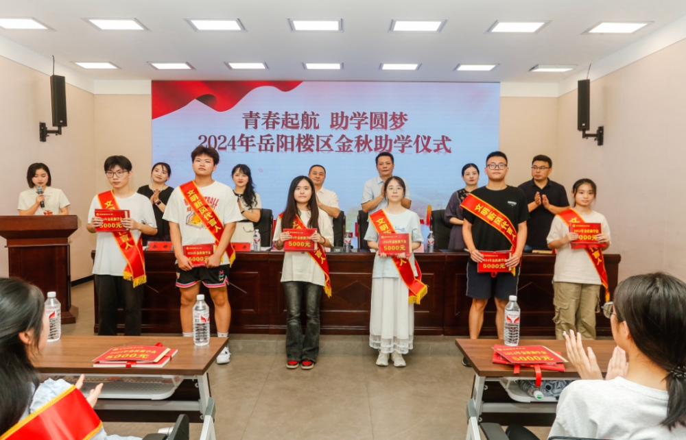 仪式上,区困难职工帮扶中心主任卢超介绍了2024年岳阳楼区“金秋助学”活动的开展情况,学生代表阮佳美、邓凯丰进行了励志发言,随后,参会领导为受助学子发放了纪念图书《任弼时的故事》《永远的丰碑》和慰问金。