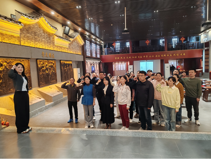区总工会全体工作人员在参观学习后开展了主题党日活动,机关党支部书记余新颖为全体党员上了一堂以“弘扬孝廉家风涵养初心使命”为主题的生动党课,随后,机关全体党员干部重温入党誓词。