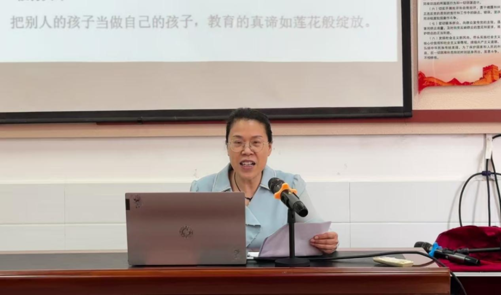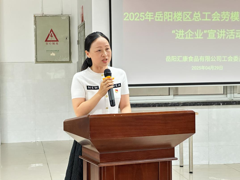 4月29日下午,全国优秀教育工作者、岳阳市劳动模范、白杨坡小学副校长童琦在岳阳汇康食品有限公司宣讲