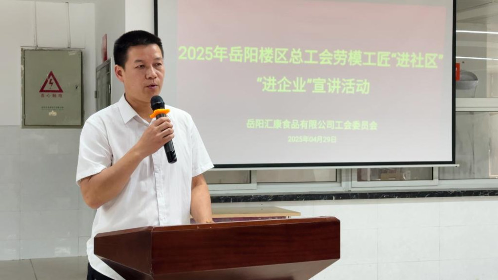4月29日下午,巴陵工匠、岳阳市杨逸雕刻艺术工作室创始人杨逸在岳阳汇康食品有限公司宣讲
