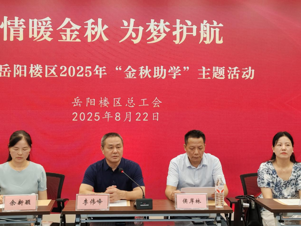8月22日上午,岳阳楼区2025年度“金秋助学·为梦护航”活动在岳阳楼区新时代文明实践中心举行,区委常委、统战部部长、区总工会主席李伟峰出席活动并讲话。区委宣传部常务副部长、文明办主任侯岸林,区总工会相关负责人、各街道(乡)工会主席和38名受助学生参加活动。