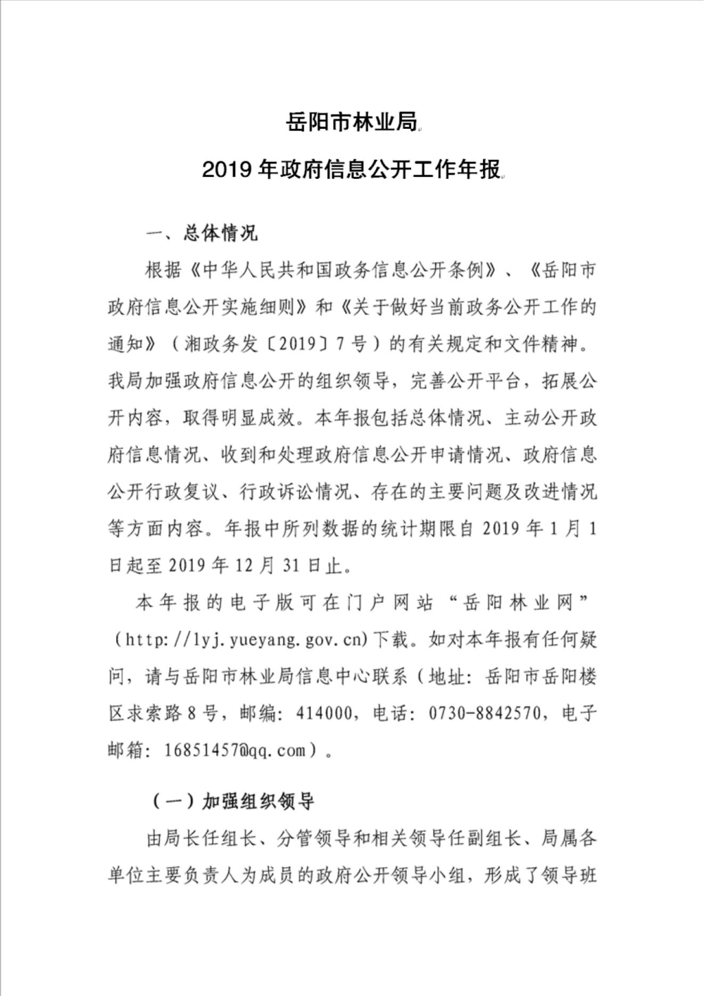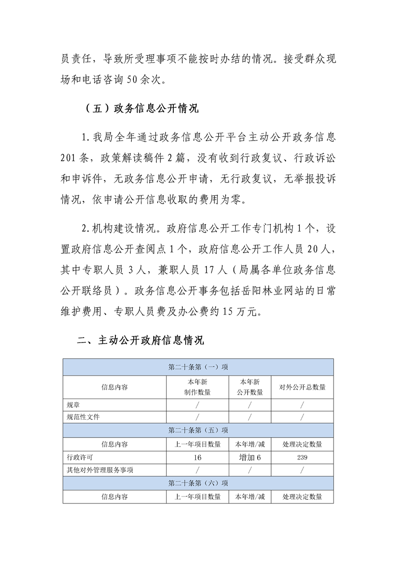 岳阳市林业局2019年政府信息公开工作年报