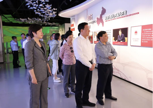 5月16日,上海市政协主席、党组书记胡文容一行来到我区,对开展长江流域水环境治理、提升文化软实力、推进新兴产业发展等情况进行调研。上海市政协副主席、党组成员虞丽娟,省政协副主席、党组成员胡伟林,市政协副主席、党组副书记秧励,市政协副主席、农工党市委会主委何祚云,区委书记雷欣,区政协主席、党组书记傅大斌参加。在华龙码头,沿着习近平总书记走过的足迹,胡文容观看展板,深入了解近几年来长江生态治理历程,走进华龙码头林阁老巡护监测点,观看习近平总书记考察君山时的照片、新闻视频,并来到沿岸的长江边,察看了长江水质,连声赞叹:“水质清澈!”,对君山区在生态保护与发展方面成效给予肯定。随后,胡文容来到“守护好一江碧水”首倡地展陈馆,通过多媒体互动场景,对我区打造“候鸟的欢歌”、“江豚的微笑”、“麋鹿的倩影”三张生态名片,以实际行动诠释习近平生态文明思想在君山的深动实践印象深刻。