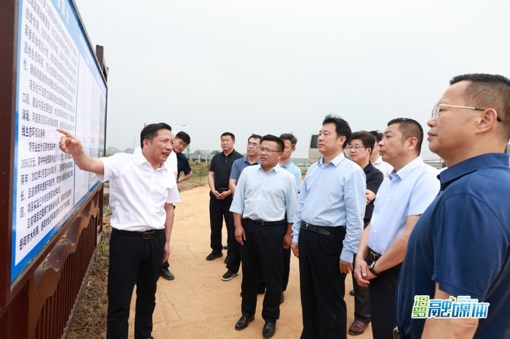 岳阳市委副书记、市长李挚(前排右三)在白塘镇江南堤详细了解汨罗江河口段鲶国家级水产种质资源保护问题整改工作开展情况