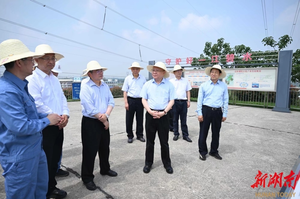在己内酰胺产业链搬迁与升级转型发展项目现场,蒋卓庆、沈晓明一行听取了项目搬迁、总体投资、设备装置等情况介绍,了解岳阳市石化产业发展、乙烯炼化一体化项目进展等情况,勉励企业坚持绿色低碳发展,强化技术创新、产品创新、工艺创新,不断提升污染防治水平,高质高效推动项目投产达效。