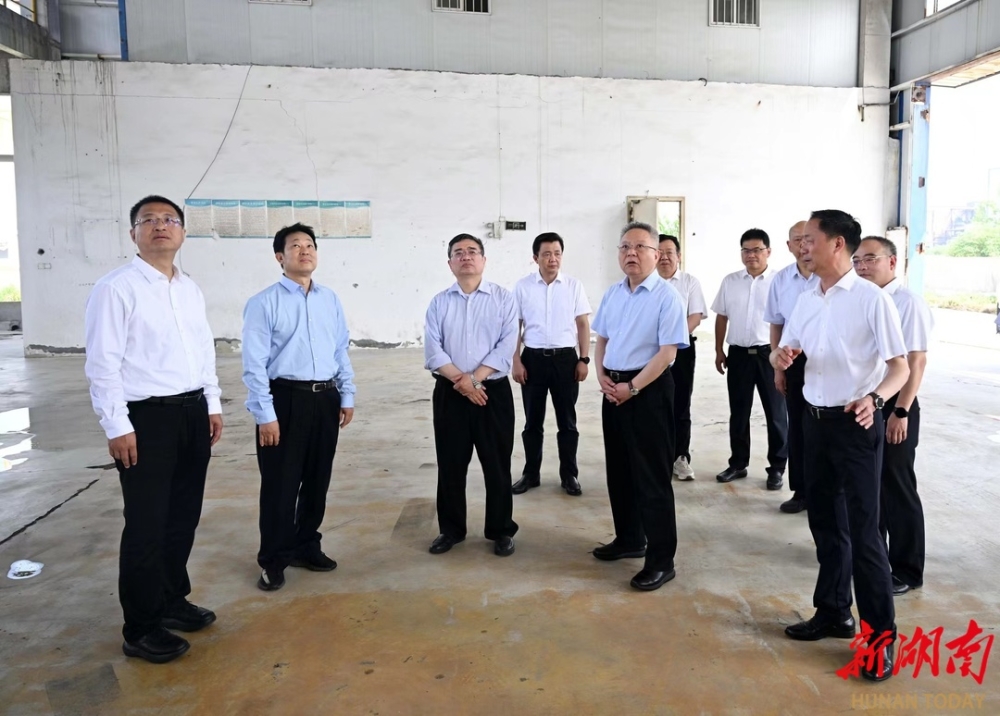 (5月23日,蒋卓庆、沈晓明一行来到临湘市滨江化工园搬迁旧址,了解沿江化工企业退出等情况。)