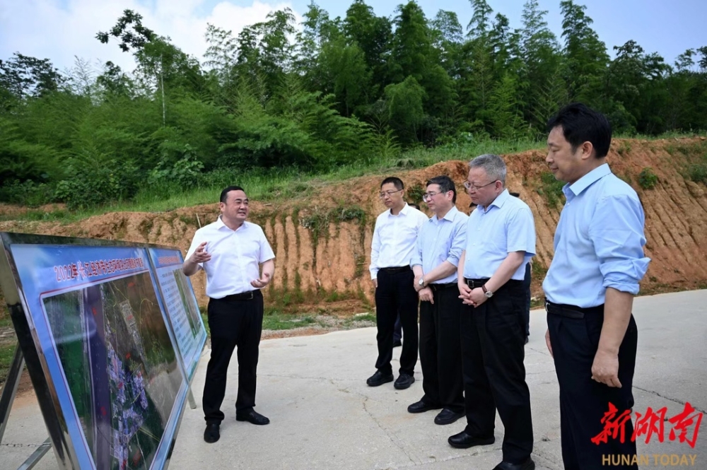 (5月23日,蒋卓庆、沈晓明一行来到云溪绿色化工高新区填湖问题整改点,听取整改和修复情况介绍。)