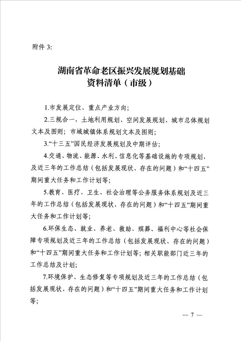关于开展湖南省革命老区振兴发展规划前期研究工作的通知