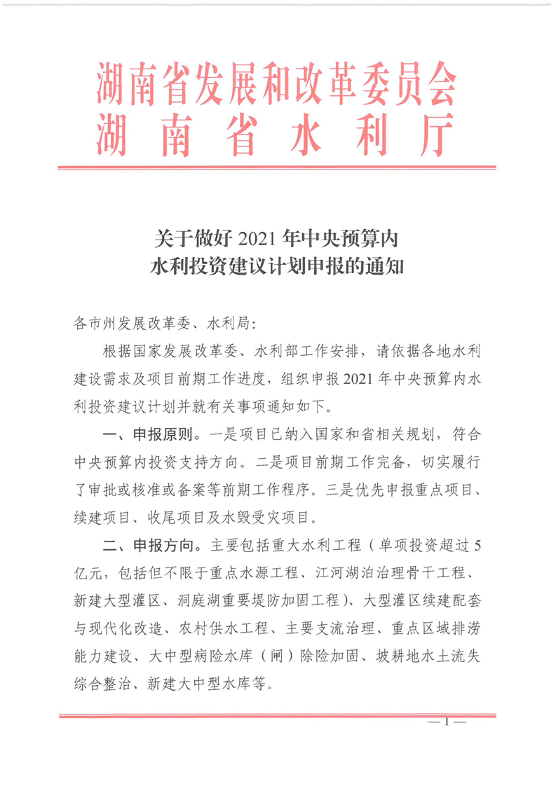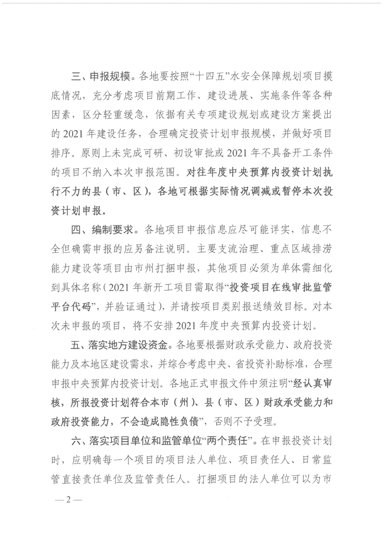 关于做好2021年中央预算内水利投资建设计划申报的通知